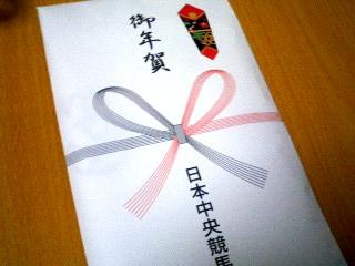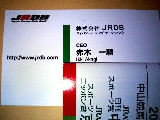 2008年金杯デーはどこのJRAの施設でも先着順でプレゼントを配っていたみたいで、自分がいつも行っているウインズでは2008年競馬カレンダーなるものを貰ったんですが、これがなかなか良いデキでして♪ 四季折々のお馬さんの風景写真に浅田次郎さんの短いエッセイが添えられていて、競馬をよく知らない人にもウケが良さそうな味わい深いつくり! その金杯の翌週、赤木一騎氏・橋浜保子さんなど著名な予想屋さんが所属する会社JRDBの運営するサイト「競馬(JRDB)を100倍楽しむ方法」でプレゼント企画をしてまして、 そのときの景品が「金杯版JRAレープロ&粗品」。 前述のカレンダーがかなり気に入っていた自分は、はてJRDBさんは「粗品」と書いてはいるけど、結構良いものと違うの?となんとなく期待が膨らみ、メールにて応募してみました。 「いつも楽しみに拝見してます。(中略)もしも当選した暁には、レープロに赤木先生のサインをば><」 という一文を添えて・・・ この応援メッセージと赤木さんにサインをねだる図々しさが効いたのか分かりませんが、 【プレゼント企画】 第1弾の当選者発表!第1回プレゼント企画「金杯版JRAレープロ&粗品」の的中者の発表です。 ・Apollo さん ← ・~~~ さん ・~~~ さん ・~~~さん ・~~~ さん 以上の5名様です。 当選おめでとうございます。 自分なんかが当たってしまいました>< 普通こんなの相手にされないだろうと思ってたので、まさかっ!って感じでした。 少なくとも自分が選ぶ立場だったら、面倒なんでスルーすると思いますわ ![]() 図々しいお願いを承知で当選させて貰えるなんて、JRDBさんアリガトウゴザイマス>< 自分の競馬理論の大部分は彼、赤木一騎氏が編み出したもの。 既に実力派予想屋として名を成している橋浜保子さん・久保和功さんのお師匠さんですから、自分からすればもう神様みたいな人なんです。 人呼んで、関西のカリスマ! 当選発表を目にしてからというもの、 スポーツ選手で言えば松井秀喜・イチロー・野村克也、 作家でなら宮澤賢治・色川武大・手塚治虫・荒木飛呂彦、 マンガのキャラクターで言えばブチャラティ、 歴史上の人物では関羽雲長・武蔵坊弁慶、 政治家ならスーチー・増田寛也、 騎手では菅原勲・武豊・岡部幸雄、 馬で言えばメイセイオペラ・キーストン・ディープインパクト らと同じくらい尊敬しているヒーローのサイン入りレープロを待ち焦がれる日々。 え、例えが変だって? その辺はスルーで>< そして10日ほど経ったある日、ついにクロネコメール便でデカイ茶封筒が! 裏には「大阪市北区・・・株式会社JRDB」と、送り主の住所がハンコで捺されている。 宛先はもちろん(ピーー)だ。こちらはプリンターで一度打ち出したものをハサミで切り貼りしたらしい。 慎重かつ丁寧に封を切り、まずは粗品とやらを拝むことに。 粗品は手拭いでした・・・ちょっと拍子抜け。 いや、別に文句は無いんですけどもっと実用的なものかと思ってました ![]() これではホントに粗品じゃn・・・ゲフンゲフン。 気を取り直して、いよいよ赤木さんのサインを拝むことに! 粗品なんかよりン十倍楽しみにしてましたからね!! レープロの表紙を飾っているのは、昨年の京都金杯を勝利したマイネルスケルツィ&柴田センセイ。 格好良いなあ・・・そういえば複勝で結構勝負したっけ。 赤木さんのサインは表紙に大きく書いてあ・・・れ?それらしいものは見当たらないな・・・ ページを手繰ってみても、ぴっかぴかの未使用レープロに間違いない・・・。 ああ、もしかしてサイン色紙に書いてくれたりしたのかな? と思って封筒の中身を確認してみるも、色紙らしいものはどこにも無い。 一応粗品の袋も茶封筒も確認してみたけど、どこもかしこもノーサイン。 なぜ? 何故? ナゼ? ああ、アレか。 やっぱりダメでしたか。 会ってもいない人間にサインを頼むなんて、失礼なことですもんね。 非常識ですもんね。 自分がアホでした。スミマセン。 でも、サイン駄目なら駄目って住所確認メールのときに教えて欲しかった・・・ 期待していただけに、ショックは大きいっす・・・ がっくし>< ・・・ん? ん、ん、ん? 株式会社JRDB CEO 赤木一騎 って、 これ赤木さんの名刺じゃあないですか!? もしかして、これがサインの替わり? 真意が分かりません>< そしてレープロで隠している部分には、携帯の番号とメアドが・・・ 電話orメールしちゃっても良いんでしょうか!? 真意が分かりません>< ちょっとの勇気を振り絞れば憧れの人とコンタクトを取れる・・・ がしかし、その勇気が無い・・・ 相手は超大物だぞ? 名も知らぬザコとメールする暇なんて無いんだぜ? 会ってもない奴のメールなんてうざがられるだけなんだぜ? どこからともなく聞こえてくる声・・・ ですよねー という言葉しか出てこない。。。こんなに扱いに困るなら、逆に何も貰わない方が気が楽だった。。。 いつか京都競馬場に行ける日が来れば、そんときサインを貰うってことで 自分を納得させるApolloで
