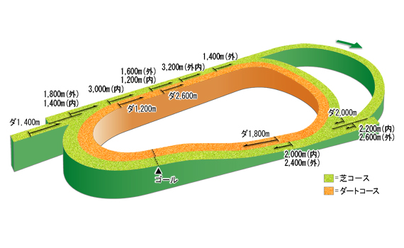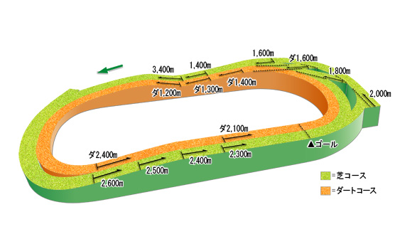 「リーチザクラウンがどんなペースで逃げるのか?」ということが、JCを予想する上で大きなキーポイントとなるわけですが、自分は“やや速い”くらいを想定しています。 その根拠となるのが、東京2400と阪神2400のコース形態の違いです。 東京 阪神 (JRAホームページより) 09神戸新聞杯では、リーチザクラウンは1000m60.3のペ-スで逃げました。 その阪神コースはスタート直後に上り坂があり、次いでRのきつい1~2コーナー。下り坂は残り600までほぼ存在せず、ペースを落としやすいコース形態になってます。 いっぽう東京2400は1~2コーナーの角度は阪神のそれに比べて緩いし、1コーナー途中から向正面にかけて700mほど下り坂が続く。そこでやっと上りが入りますが、直後に300mほどの下りがまた入ります。 阪神2400に比べてペースを緩ませられるポイントが少ない(それどころか加速ポイントが多い)東京2400。リーチザクラウンのあの気性を考えると、神戸新聞杯の60.3よりも速いペースの逃げになる可能性は高そうです。 展望で挙げたとおり、手前を替えずにGⅠを勝てるほどの持続力を持つサウスポー・コンデュイット。寝肩・ベタヅメ(繋は不明)・腰高と、先日故障した2歳馬リディルに似て先行力・終いの脚を兼ね備えた体型。ハイペースなら日本に敵は無しというところを見せ付けて欲しいものです。 対抗にハイペース向きで、ルメールマジックを期待のウオッカ。以下デキ上向きの実力馬アサクサキングス・エイシンデピュティに、外国馬からもう一頭インターパテイションまで。 ◎コンデュイット 〇ウオッカ ▲アサクサキングス △エイシンデピュティ △インターパテイション 余談ですが、軽く検索したら「コンデュイットが手前を替えずにキングジョージを勝った」と書いてるのは、自分とこ以外にどこにも無いんですけど…新聞はweb記事しか調べてないけども。かん口令でも敷かれてるんでしょうか?^^; 京阪杯